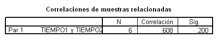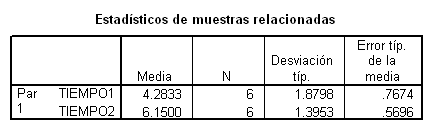 T-TEST PAIRS=TIEMPO1 TIEMPO2.(PRUEBA T PARA MUESTRAS RELACIONADAS)