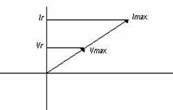 Debido a que Ir y Vr varían ambas como Sen Wt y alcanzan sus valores máximos al mismo tiempo, como se muestra en la figura, se dice que están en fase. Las longitudes de las flechas corresponden a Vmax y Imax. Las proyecciones de la flecha sobre el eje vertical dar Ir