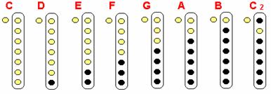 Para sua compreensão, comecemos com o que toda criança (exceto no Afeganistão) sabe: as notas inteiras. Observe ainda a ordem da variação grave-agudo: