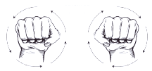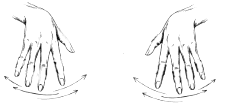 Relaja las manos de modo que las muñecas queden flojas y sueltas. SUAVEMENTE agita tus manos de un lado al otro. Repetir 10-20 veces.