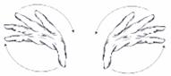 Entrelaza los dedos de las manos. Lentamente rota tus manos de modo que puedas ver parte de las palmas y las muñecas. Estira hasta donde puedas sin sentir dolor o incomodidad. Repite en dirección contraria (ver ilustraciones). Mantén durante 3 segundos y descansa. Repite lentamente 5-10 veces.
