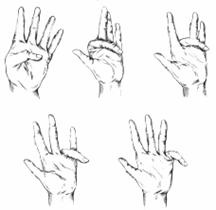 circular, comenzando con el meñique y terminando con el pulgar. Cuando termines