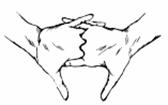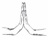 Junta las puntas de los dedos como se ve en la ilustración. Lentamente empuja las dos manos sin que se toquen las palmas. Lentamente levanta los codos hasta el punto en que se estiren los dedos y las manos sin que se cause dolor o incomodidad. Mantén durante 3 segundos. Lentamente relaja las manos hasta que solamente se toquen las puntas de los dedos. Repite lentamente 5-10 veces