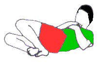 Inclinaremos las rodillas hacia el lado derecho, levantando hacia delante la parte superior del cuerpo, como si la barbilla tendiera a buscar la parte superior de la cadera izquierda. Nos concentraremos en la torsión hacia arriba, usando los músculos abdominales del lado izquierdo. Mantendremos la barbilla cerca del pecho y no moveremos la cabeza ni hacia arriba ni hacia abajo mientras dura el ejercicio. Este ejercicio es mas difícil de lo que parece. Intentaremos repetirlo entre 5 y 10 veces en cada lado.