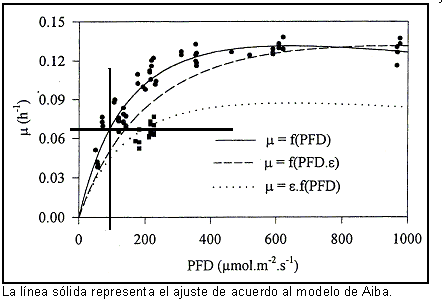 coeficiente de inhibición de la luz, modelo de Aiba |