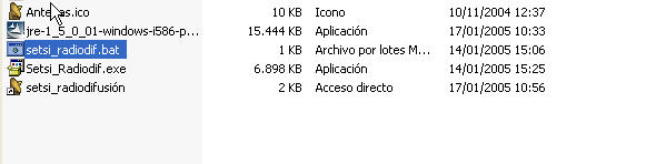 Para ejecutar la aplicación se pulsará sobre el icono anterior. Si con ello la aplicación no arranca habría que buscar el fichero "C:\ setsi_radiodif.bat" y hacer doble clic sobre él.
