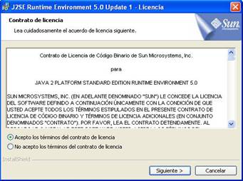 2.4.- Instalación de la Java Virtual Machine (JRE5.0)