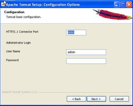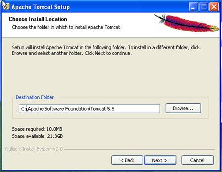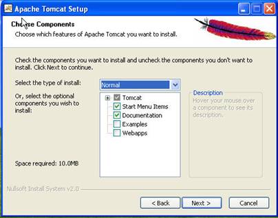 Comenzará con la instalación del Tomcat. Dejamos las opciones por defecto y pulsamos "Next"