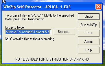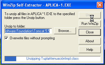 Después de la verificación de la ruta del Tomcat, pulsamos sobre el botón "Unzip"