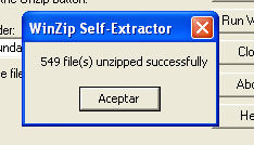 El fichero está comprimido en formato zip, para que ocupe menos. Para descomprimirlo, teniendo instalado el WinZip, basta con hacer un doble clic sobre el mismo, aparecerá entonces la pantalla del WinZip