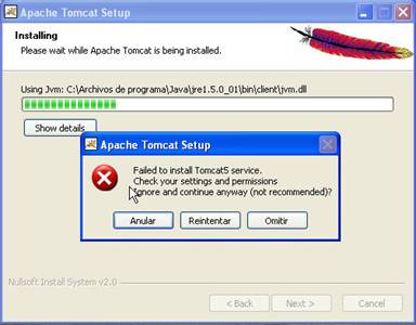 2) Si no está en Windows XP o el firewall ha comprobado que esta desactivado, y que en la instalación sigue apareciendo el mismo error. Eso es debido a una desinstalación errónea de un servicio Tomcat en su ordenador, para ello deberá de:
