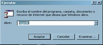 Vaya al botón de inicio y pulse en Ejecutar que abrirá una línea para meter un comando. Introduzca regedit, y pulse Aceptar.