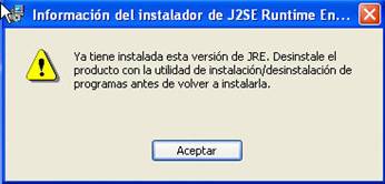 Es debido a que ya se tiene instalada, y no es necesaria su reinstalación, así que se pulsa en aceptar y se pasa al siguiente paso de instalación.