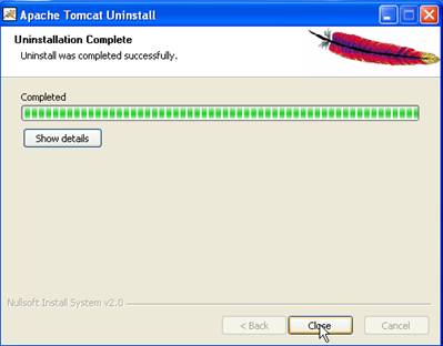 Pinchar sobre é para que empiece la desinstalación apropiada del servicio Tomcat.