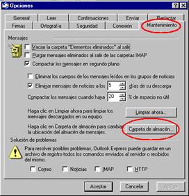 En la ventana que se abre, elegimos la pestaña "Mantenimiento" y pinchamos en el botón "Carpeta de almacén"