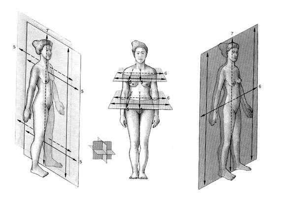 Plano sagital (medio): es un plano vertical que divide el cuerpo en una parte derecha y otra izquierda. Se puede decir que son planos parasagitales los paralelos a la línea media (línea imaginaria que atraviesa el centro del cuerpo).