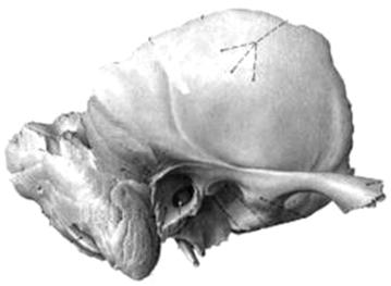 HUESOS PARIETALES: son dos huesos planos que forman parte de la bóveda craneal y de las paredes laterales. Se unen entre sí en la línea media de la bóveda craneal, en la llamada sutura sagital. Los huesos parietales se articulan por delante con el frontal (sutura coronal) y por detrás con el occipital en la sutura Lambdoidea