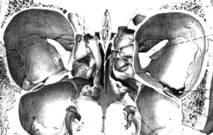 En la línea media está el cuerpo del esfenoides donde hay una fosa llamada la silla turca, que aloja una glándula del Sistema Nervioso llamada hipófisis