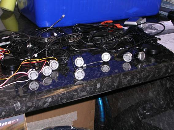 Luego queda ubicar la centralita y conectar los 8 sensores y luego conectar la alimentación y conexión de freno (4 sensores delanteros) y marcha atrás (4 sensores traseros)