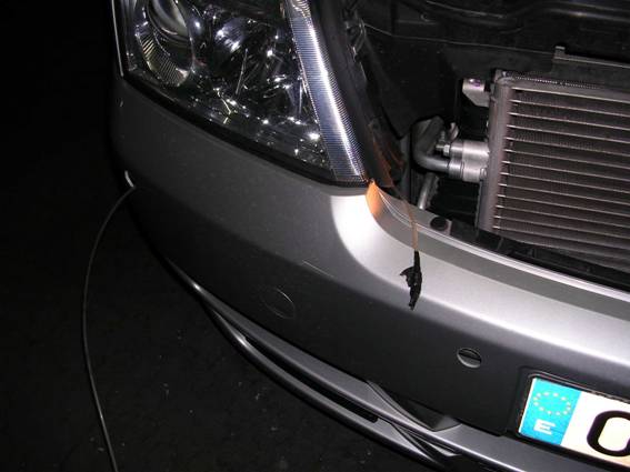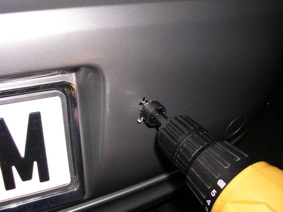 Ahora vamos con el paragolpes trasero, hay que hacer lo mismo, marcar, taladrar y luego pasarlos cable por el pasamuros de la parte trasera que es este.