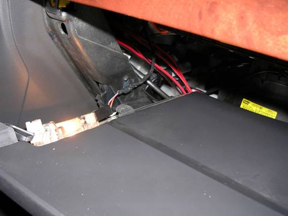 Para poder coger los cables hay que desmontar la guantera de esta manera.