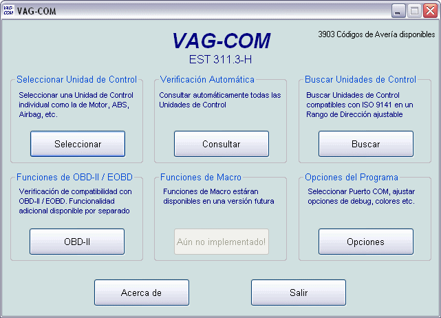 R: No es recomendable. Conste que no damos soporte ni garantía por daños y perjuicios si Ud. usa una interfaz de otra compañía. Además, existen interfaces que no soportan los automóviles hechos antes del 1996. Por razones de compatibilidad y seguridad, las versiones del VAG-COM en español a partir de la 304.0 ya no soportan otras interfaces que las nuestras.