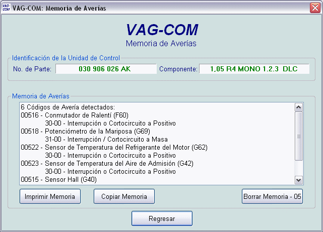 En esta pantalla, el VAG-COM muestra la Memoria de Averías