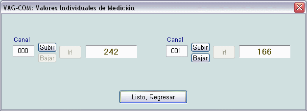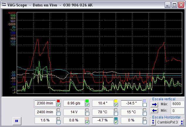 Oprimiendo VAG-Scope, Ud. puede graficar los datos mostrados en las ventanillas.