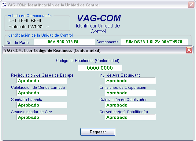 Para regresar a la Pantalla Principal de la simulación del VAG-COM en español, haga clic en el botón Salir en la imagen