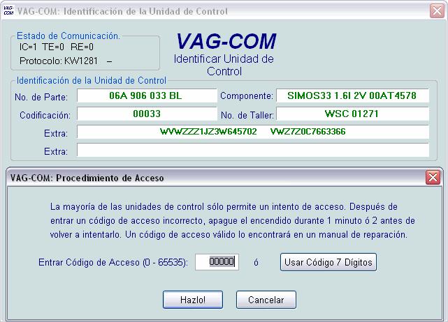 Si Ud. va a usar el VAG-COM mientras conduce, pídele ayuda a alguien, o sea que una persona maneja y la otra trabaja en la computadora!