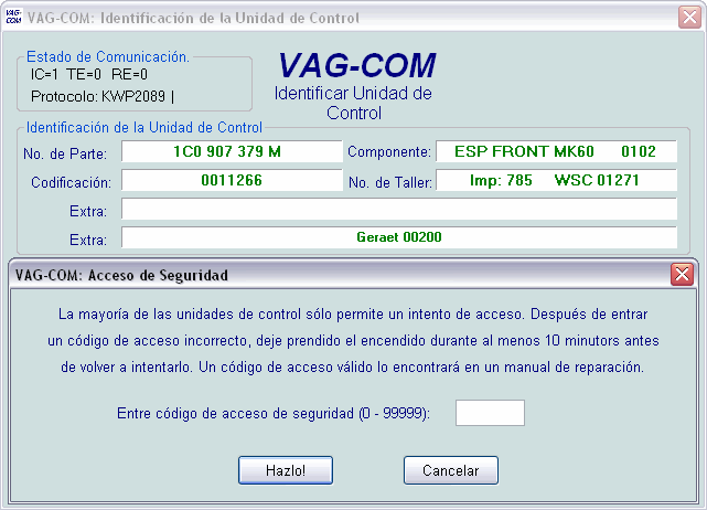 R: En muchos de los modelos más nuevos se produce una serie de pitidos desde el tablero cuando el VAG-COM abre la unidad de control del sistema de antibloqueo (ABS), y la luz del ABS está prendido mientras el VAG-COM está comunicando con la unidad de control. Esto es perfectamente normal y sirve para avisar al chofer que el ABS no funciona mientras está en el modo diagnóstico.