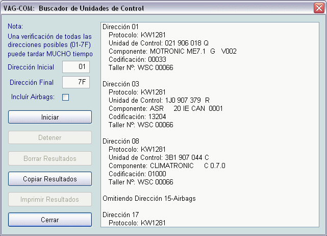 R: Los protocolos diagnósticos requieren cierto grado de respuesta en tiempo real del lector de averías. Ciertos programas y servicios pueden hacer que el VAG-COM no responda en el plazo requerido por los protocolos. Algunas unidades de control son más sensibles a esto que otros. Remedio: