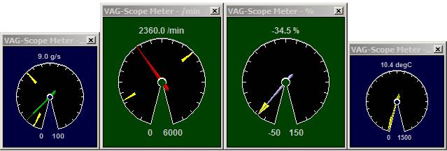 En cualquier caso, VAG-COM le mostrará una "escala" de los datos provenientes de la unidad de control en unidades reales como Grados Cº, km/h, etc. En la actualidad, todas las escala están en unidades métricas. Si hay suficiente demanda se pondrá la opción para seleccionar unidades "Estadounidenses" como grados Fahrenheit y millas por hora .
