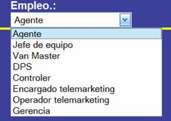 “Empleo” – determina si el nombre del empleado saldrá en los listados correspondientes a la hora de meter los datos de comisiones. En nuestro ejemplo, el nombre de Almudena saldrá en el listado de DPS o de Ayudante DPS. Los códigos de los empleos son: