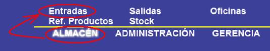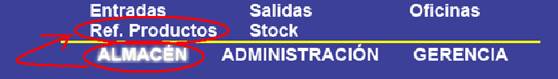 Para acceder a esta pantalla el usuario tiene que pinchar la opción “Ref. Productos” del módulo de “Almacén”.