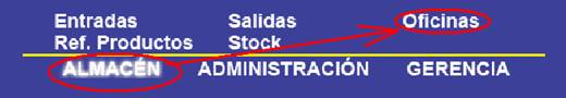 Para acceder a esta pantalla el usuario tiene que pinchar la opción “Oficinas” del módulo de “Almacén”.