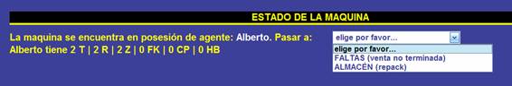 Dependiente del estado de la maquina, la pantalla puede aparecer en diferentes formas. Para empezar, la maquina se encontrará en el almacén y se podrá entregar al curso o a un agente.