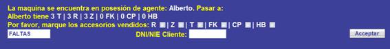 Una vez pulsado el “Aceptar”, la maquina pasará a cliente (faltas), y el usuario tendrá la opción de introducir todos los datos correspondientes a la venta. La pantalla tendrá 5 secciones, cada una con su propio botón “Validar Cambios”.