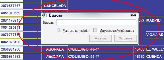 Saltará una ventana de busqueada donde el usuario podrá introducir cualquier texto relacionado con los datos que se relevan en este listado y el Explorador de Internet le buscará todas las palabras o partes de palabras correspondientes.
