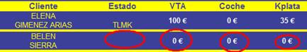 Venta completa – si esta en “SI” y hay una agente, cobrará 30€ más, si hay dos agentes cobrarán 15€ cada uno y si el campo esta en “NO” no se cobrará el completo.