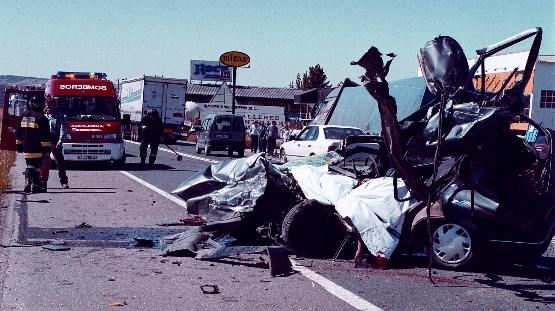 1-A. Se coloca en el arcén señal de accidente tipo paraguas a 300 metros aprox. del lugar del accidente en una carretera de dos carriles y a 600 metros en autopistas y autovías. Esta tarea la realizaremos si somos los primeros en llegar al siniestro, ya que la señalización y regulación del tráfico son funciones de 424c223e guardia civil y policía autonómica.