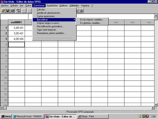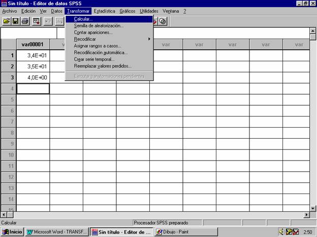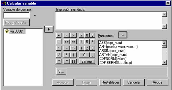 En las versiones del SPSS/PC para MSDOS, esta operación se realizaba con el comando COMPUTE.