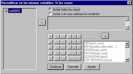 Si se pincha en el botón Si... la recodificación de la variable sólo se realizará para los casos que satisfagan la condición especificada en la ventana que aparece:
