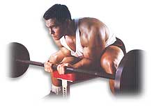 Ladda på en stång med vikt och placera den framför dig. Greppa stången med underhandsgreppoch händerna ungefär 10 cm isär. Plocka upp stången och sätt dig på bänken med underarmarna vilande på bänken. Du ska hålla stången och handlederna hängades över bänkens kant.