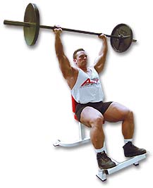 Med explosiv rörelse pressar du skivstången rakt uppåt ovanför huvudet.