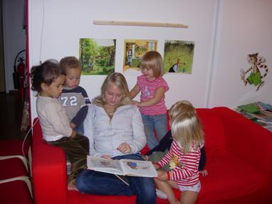 Bella läser en saga för barnen