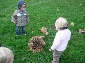 Olof gick med Elin, Sonia, Edmund, Gustav och William upp till toppen. Vi tog den långa vägen idag som är så rolig för då får man springa själv och behöver inte hålla i nåt rep eller en kompis utan kan spurta på för glatta livet. Alla sprang superfort och inte ens hunddagiset hade en chans att hålla vårat tempo idag. På vägen upp hittade vi massa fina svampar som vi undersökte noga. Sen gick vi vidare till parken och lekte där en stund. Vi grillade saker, klättrade och gungade. Dagens höjdpunkt var när det kom en klottersanerare och började ta bort klotter från lyktstolpar med en högtrycksspruta. Alla tyckte han var lite busig och skrattade högt. Det vet ju alla att man inte får spruta vatten hur som helst. Klottergubben verkade tyvärr inte uppskatta sin nyvunna idolstatus utan såg efter en stund lite arg ut och hoppade in i sin bil och körde iväg till barnens stora besvikelse.