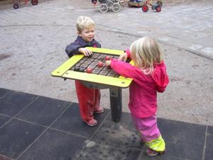 Roligt med en så här stor gunga där man fick plats många......Hugo och Alvis spelade det här festliga kulspelet