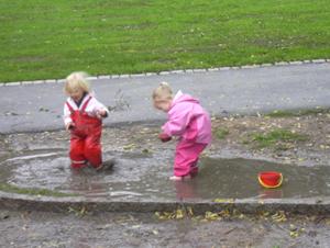 Den här roliga snurran var poppis.....................Elin och Sonia hittade en rolig vattenpöl man kunde plaska i