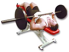 Nedåtlutande bänkpress med skivstång är en bra basövning för styrka och utveckling av bröstet. De gör att du kan använda mycket överbelastning, speciellt på nedre bröstregionen.